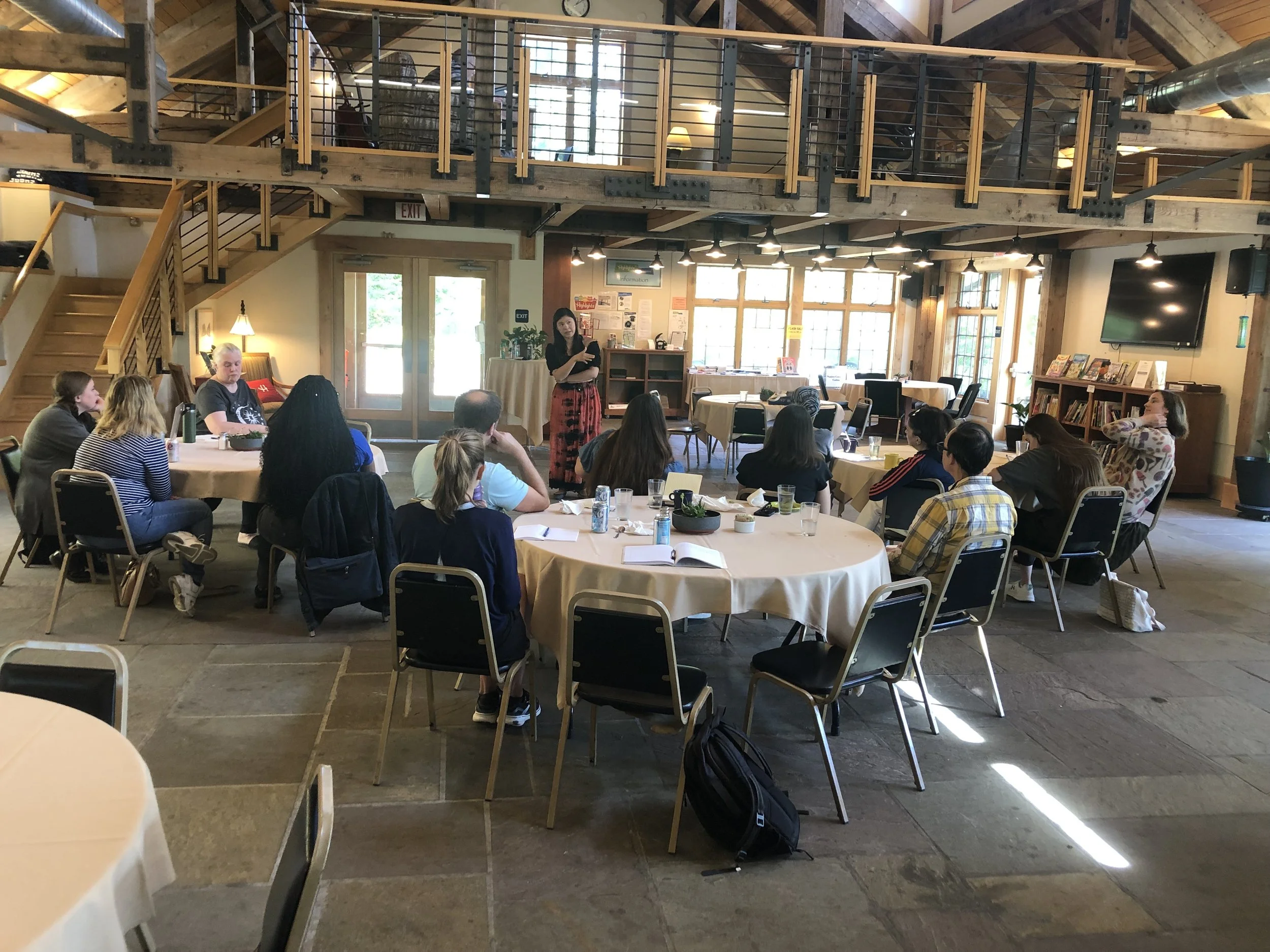 Poetry workshops feature critiques of two poems submitted ahead of time. The workshops often end with one ten- to fifteen-minute writing prompt or a skillbuilding session. Prior skill sessions have focused on topics such as sound and rhythm, form, voice, and language.